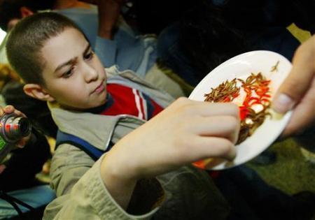 一名來自印度港市馬德拉斯的男子在20秒內將200條行色各異的蟲子吞入了肚內。