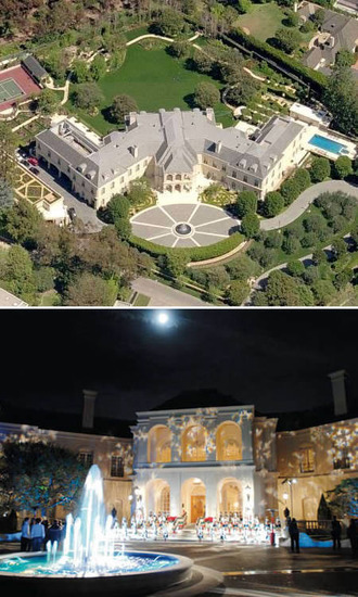 這座翻版的凡爾賽宮建築面積超過8300平方米,等於50個美國普通家庭的住宅面積。整幢豪宅共有30間臥房、3個奧運會標準大小的游泳池、23間浴室、10間廚房、1個籃球場、2個網球場。地下停車場可同時停放20輛轎車。