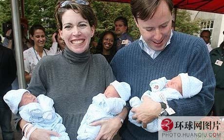 2008年10月,紐約一對夫婦順利產下同卵三胞胎男嬰。 公開的一張照片上是德斯蒙德和凱利·里昂帶著剛出生5天的6磅的凱文·帕特立克、5磅8盎司的德克蘭·傑勒德和5磅4盎司的科爾馬克·弗朗西斯離開曼哈頓醫院。 這對夫婦居住在紐約歐文頓,他們已經有兩個孩子,一個2歲,另一個4歲,他們通過自然受孕懷上同卵三胞胎。 過去幾十年,隨著人工受孕技術不斷發展,雙胞胎、三胞胎和四胞胎變得越來越普遍,但是同卵三胞胎仍非常罕見。 據一些科學家估計,同卵三胞胎的出生率不超過一億分之一。 而雙胞胎和四胞胎的出生率超過五十萬分之一,甚至能達到六萬四千分之一。